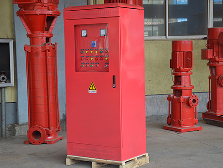 引至消防栓按鈕、信號燈及引至消防中心遙控的控制電AC24V·100VA??刂乒裨O(shè)有泵開、泵停、泵故障等無源接點反饋消防中心。具備當主用泵故障時,備用泵自動延時投入的功能。除此之外,控制柜可以根據(jù)用戶需要,增加雙電源自動切換功能,定期自動巡檢等功能,大功率消防主泵可以采用軟起動方式緩減水泵起動時對電網(wǎng)及管網(wǎng)的沖擊。