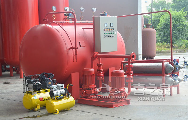 消防氣體頂壓設備,顧名思義就是將一定的壓力氣體和消防用水貯存在密閉的鋼制壓力容器內,在水泵運行和非運行時間內均能向消防管網(wǎng)自動連續(xù)的供水。消防氣體頂壓設備,是當下消防供水設備中較為先進、安全的有效穩(wěn)壓供水設備。然而,就從功能構造上來看,消防氣體頂壓設備存在一定的風險,那就是漏氣。