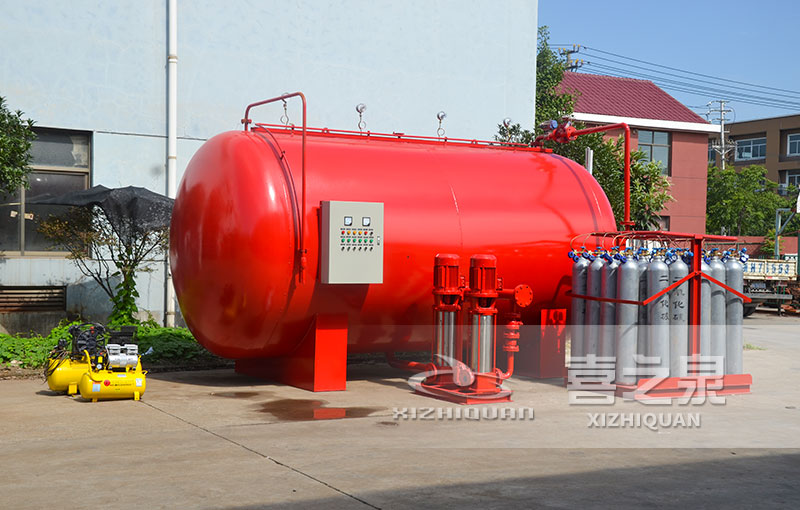 氣體頂壓消防設(shè)備主要由觸摸屏式智能控制系統(tǒng)、穩(wěn)壓泵組、氣壓水罐、高壓氣瓶組、氣體頂壓系統(tǒng)、穩(wěn)壓氣泵、自動(dòng)止氣裝置、液位控制裝置、控制儀表、管路和閥門等組成。