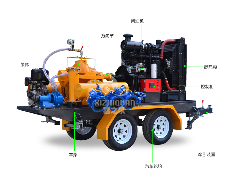 中開開架式移動泵車,XBC-KD柴油機中開泵,進出口均在泵體上,檢修時只需吊出泵蓋,轉(zhuǎn)子部件可移動進行檢修作業(yè),而不需拆卸管路。十分方便,根據(jù)需要,柴油機可以在左端也可在右端,方便現(xiàn)場安裝。結(jié)構(gòu)上縮短轉(zhuǎn)子部件軸向尺寸,軸的剛性好,運行更穩(wěn)定可靠。設(shè)有泵體密封環(huán),而葉輪密封環(huán)為可選用條件。