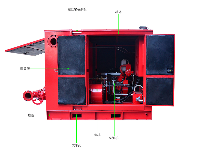 3.箱體隔音式消防泵,該消防雙動力給水設(shè)備適用與各種應(yīng)急備用泵的場所。