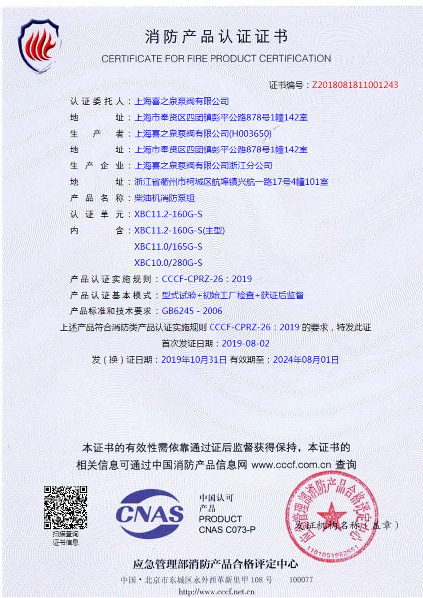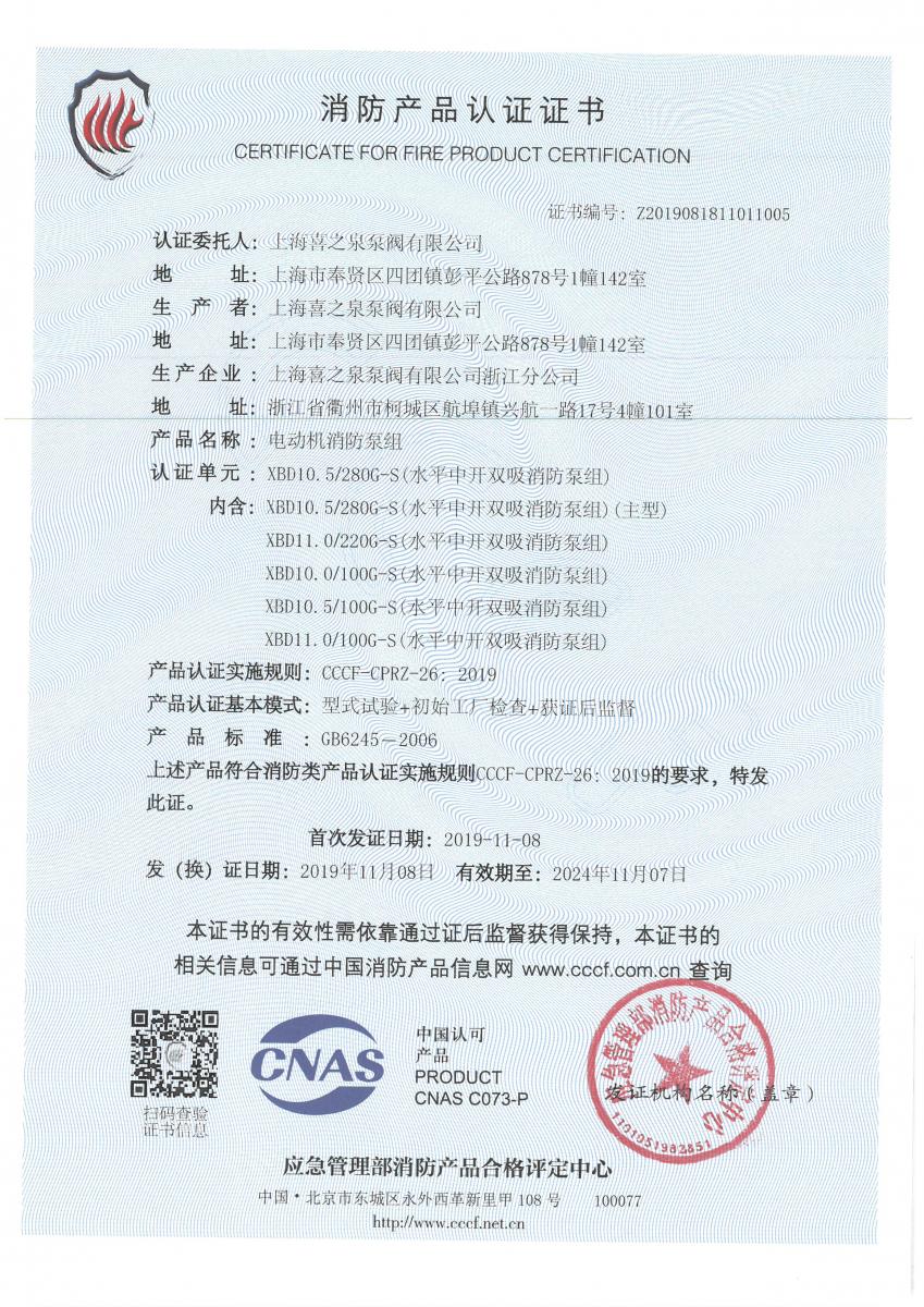 上海喜之泉300多款設(shè)備均通過國(guó)家cccf公安部消防評(píng)定中心認(rèn)證,產(chǎn)品具備國(guó)際出口標(biāo)準(zhǔn),可為客戶提供優(yōu)質(zhì)的產(chǎn)品與全方位的專業(yè)服務(wù)。